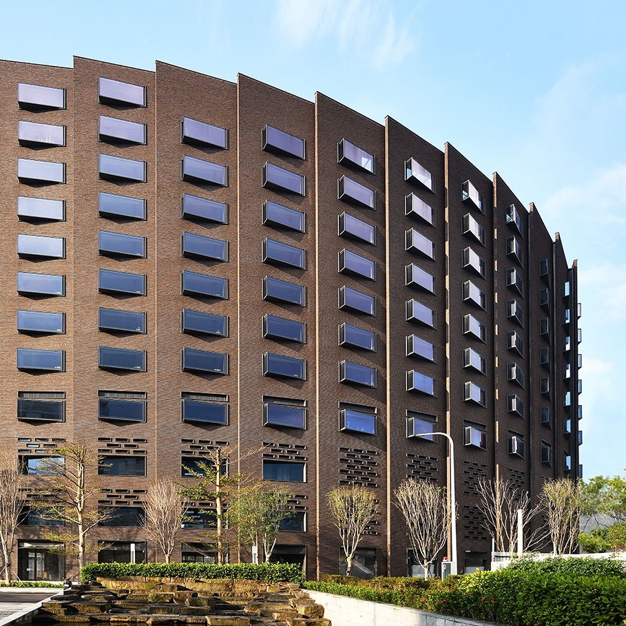 設計概念以早期大直基隆河沿岸的磚窯廠為發想,建築物立面取材磚的意象,北向立面以手工劈裂面磚傳達磚的質感,南向立面採用現代感的金屬鋁板,呈現過往與現代的對比。