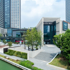 Eslite Suzhou is a successful commercial and cultural complex that rests on the shore of Jinji Lake. The architectural design pays great respect to the lakeside and the triangular site, delivering an isosceles, three-sided podium that steps down towards the water, holding up the twin towers that stand at its base angles. Main entrances are placed at the three vertices, welcoming visitors into a wondrous hybrid of commercial demands and cultural values.