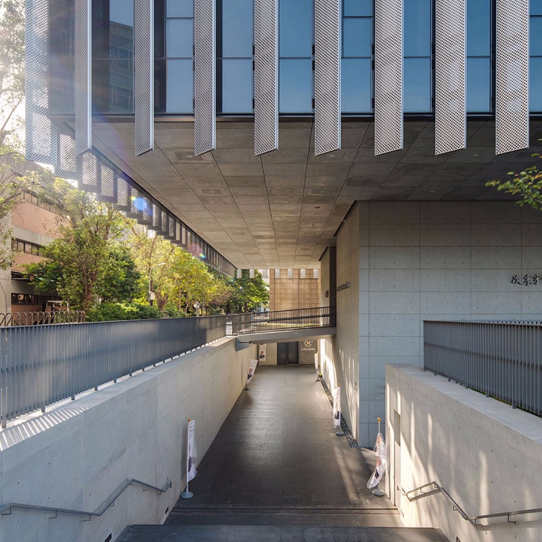 Behind the external hidden sphere is a tubular open atrium 38-meter in height. Its height references the Pantheon of Rome. Providing visual continuity between inside and outside, one can directly sense the natural environment, rain or shine, day or night. The interior façade of the atrium is modeled after the heavenly bodies, made of perforated metal claddings. It provides visual penetration through the hallways while decreasing echoes in the atrium.