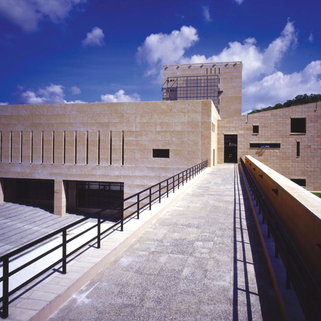 Two architecture masses protrude from the slope. The lower mass houses a movie theater, and the taller mass overlooking the nearby reservoir accommodates offices and research rooms. Courtyards of varying sizes are carved into the podium, providing light and ventilation for the lower levels and offering informal gathering spaces for students.